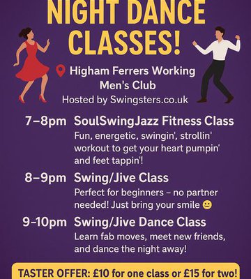 8:15-9:10pm – Intermediate Swing Dance “Drop-in Class” - £8