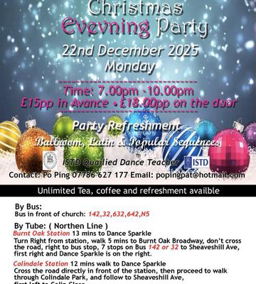 Tube: Northern Line: Burnt Oak station 13mins to Dance Sparkle. Turn right from station, walk 6 mins to Burnt Oak Broadway, don’t cross the road, right to bus stop, 7 stops on bus 142,32 to Sheaveshill Ave, walk in Sheaveshill Avenue, first right to Colin Close. Dance Sparkle is on the right.