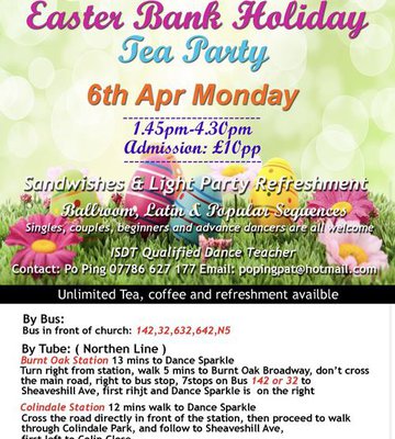 Colindale weekly Monday tea dance venue